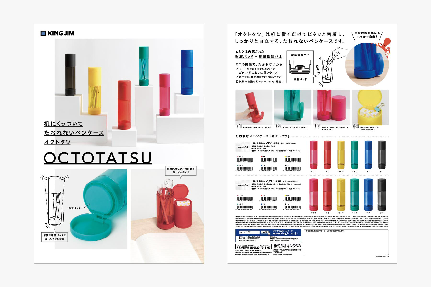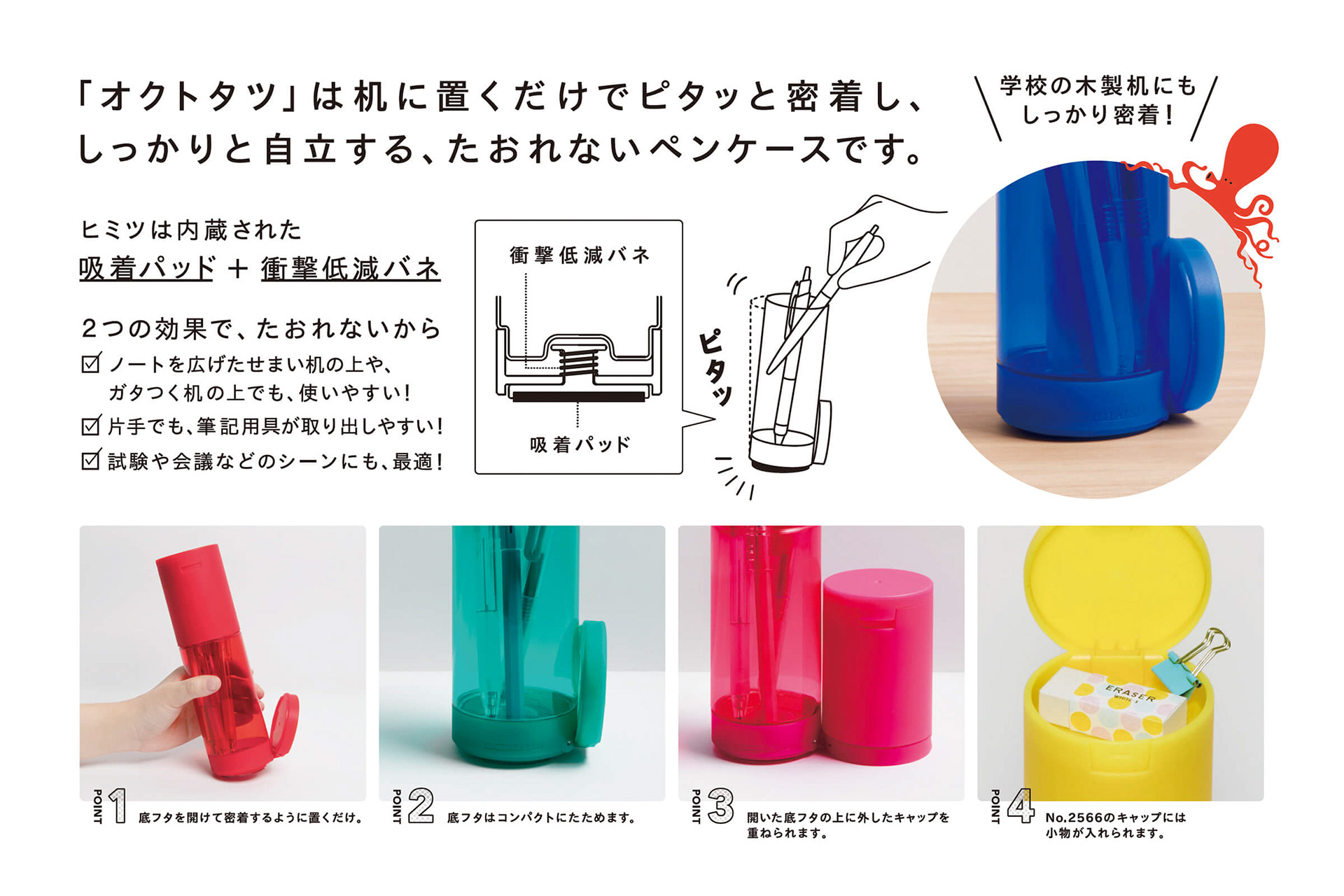 机にくっついてたおれないペンケース「オクトタツ」の