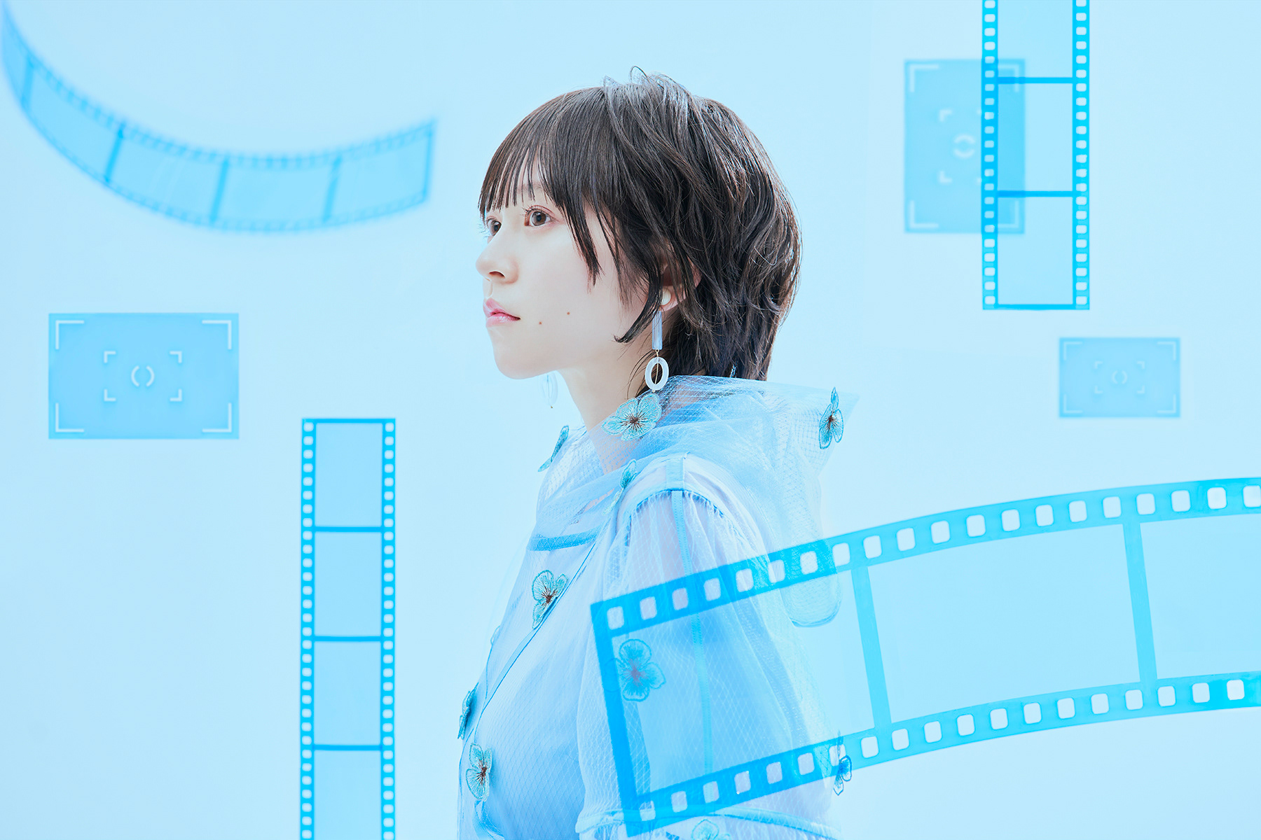 青く染まったフィルムやファインダーをモチーフにしたジャケット。