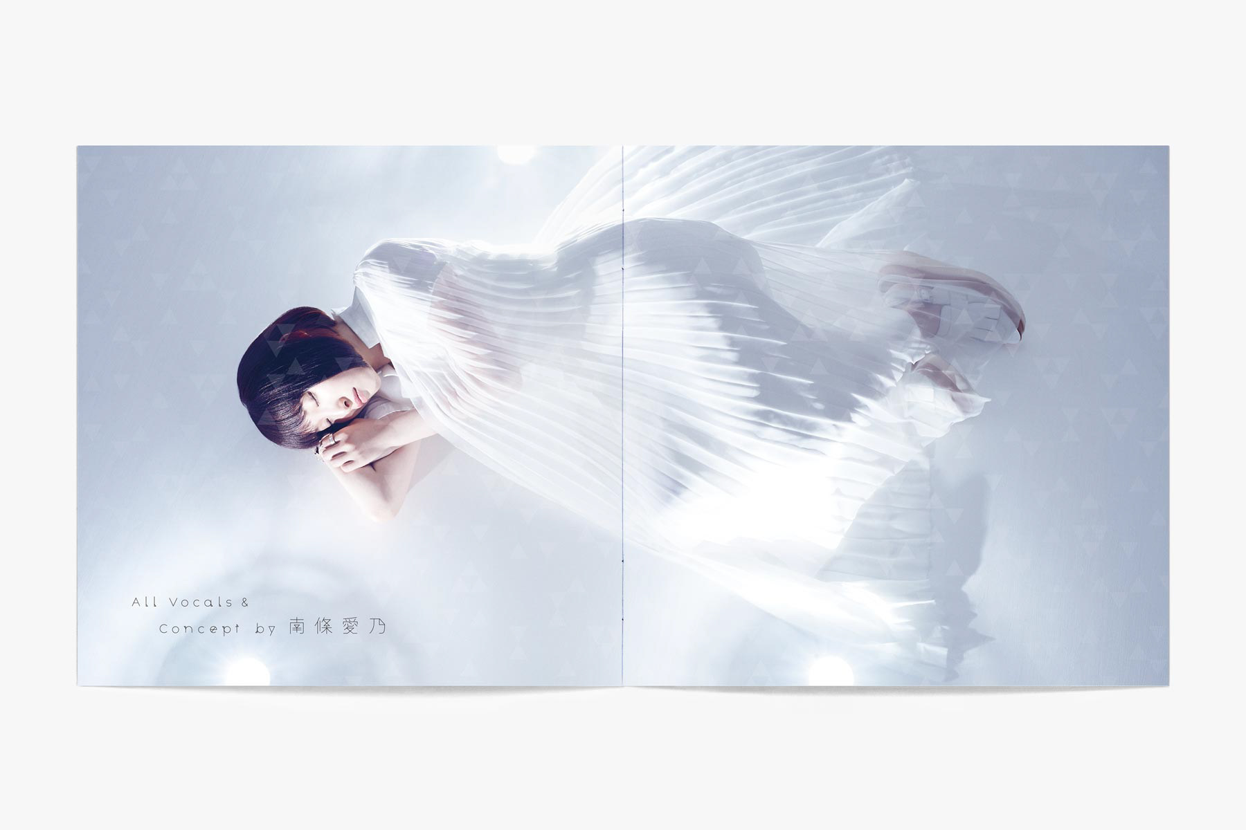 3角のミラーを3枚組み合わせて万華鏡のような空間を作り撮影を行いました。